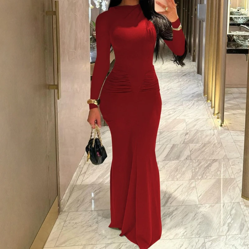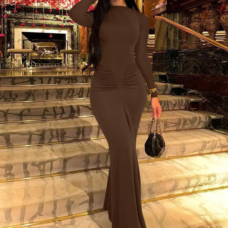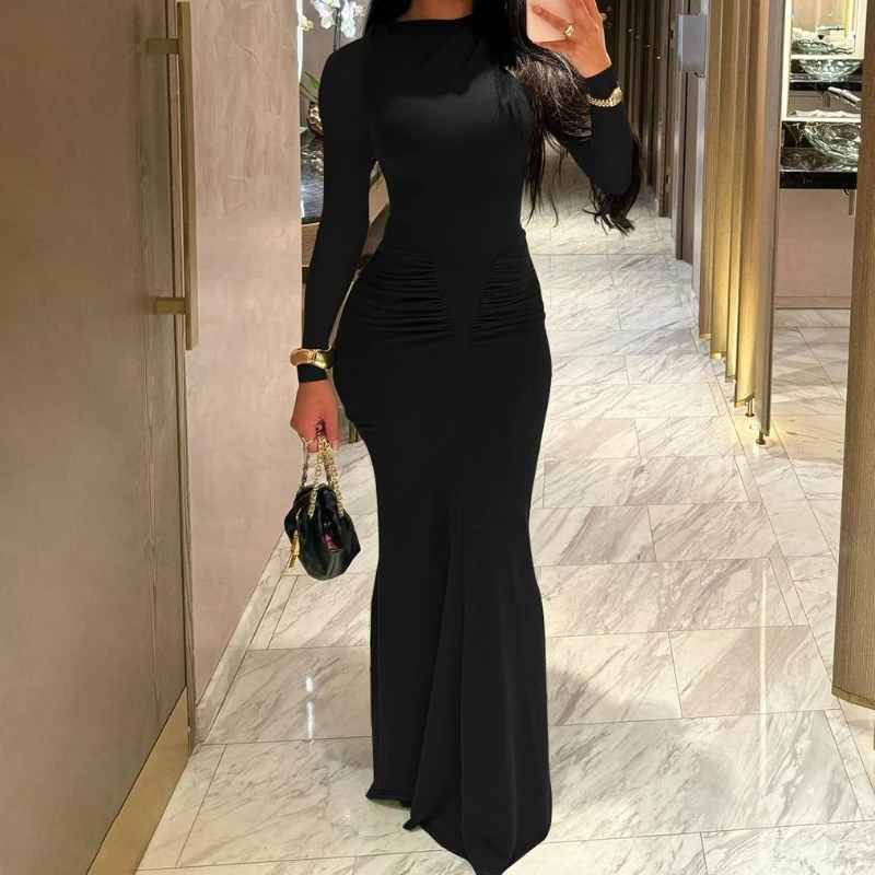 Vestido Maxi Elegante Ajustado – Bodycon Feminino Manga Longa
